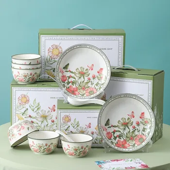 • Floral Ceramic Dinnerware Set Disposable Eco-Friendly Open Dish Gift Box Cross-Border Bowl Spoon Tableware Small