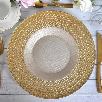 • Creative Wheat Ear Edge Decorative Glass Plate Classic Style Western Steak Pad Fruit Plate Factory Direct Sales for Parties