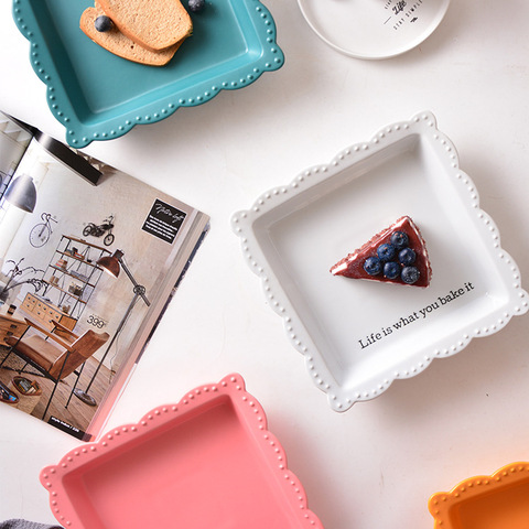 ถาดอบเซรามิกลายลูกไม้ทรงสี่เหลี่ยมถาดใส่น้ำชายามบ่ายขนมใช้ในครัวเรือนลายลูกไม้แบบใช้แล้วทิ้ง