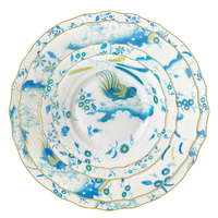 จานเซรามิก4ชิ้นสำหรับงานเลี้ยงอาหารค่ำลายดอกไม้สีฟ้า dosia ปากบัวแบบใช้แล้วทิ้ง2025ใหม่