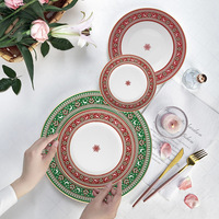 ชุดจานพิซซ่าสเต็กเคลือบสีทองแบบตะวันตกสุดคลาสสิกชุดเครื่องเคลือบดินเผาเซรามิกหยกสุดสร้างสรรค์เป็นมิตรกับสิ่งแวดล้อม