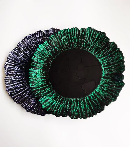 क्लासिक पार्टी अवसरों के लिए हरे नीले रंग के रंग में पश्चिमी शैली की रचनात्मक घरेलू ग्लास प्लेट डिश