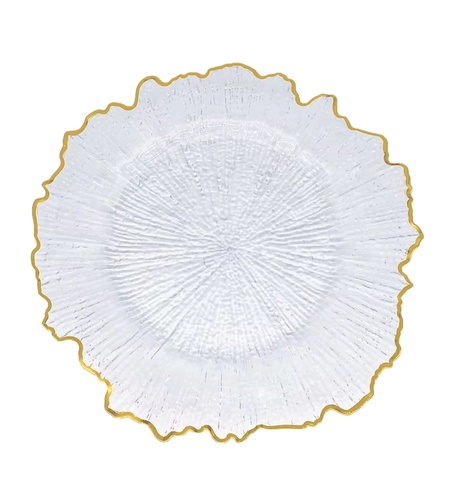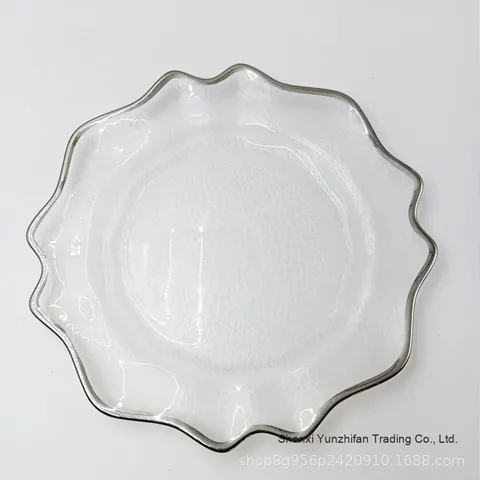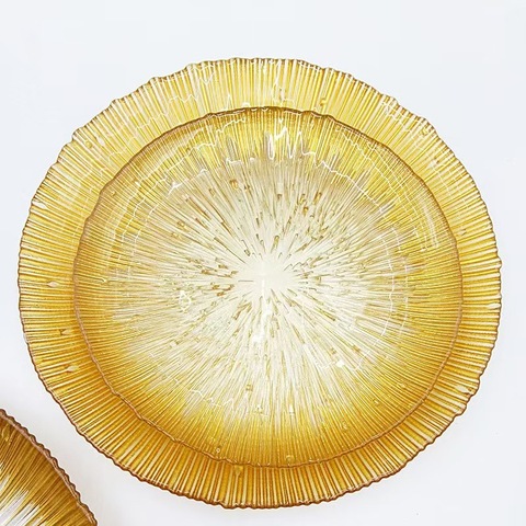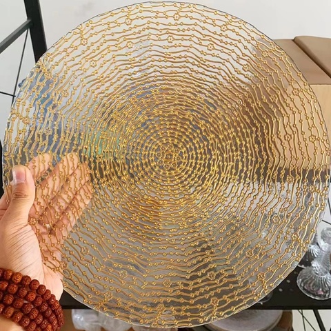 यूरोपीय आधुनिक इलेक्ट्रोप्लेटेड सोने के बीड प्लेट पारदर्शी ग्लास सोने के किनारे पार्टियों के लिए पश्चिमी भोजन डिस्पोजेबल फ्रॉस्ट के लिए