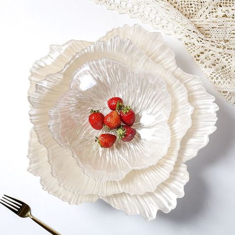 पर्यावरण के अनुकूल स्कैंडिनेवियाई पुष्प टेबल घरेलू पार्टियों और होटलों के लिए मोती सफेद ग्लास स्नैक प्लेट डिश
