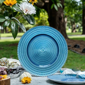 • 13-Inch Eco-Friendly Snake Plant Pattern Glass for Charger Plate Transparent Gold Western Wedding Decoration Feature-Rich Style