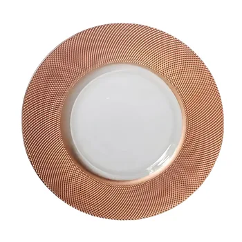 • 2025 Modern Elegant Clear Glass Eco-Friendly Charger Plate Sets with Gold Rim Round Plate Dish for Giveaways